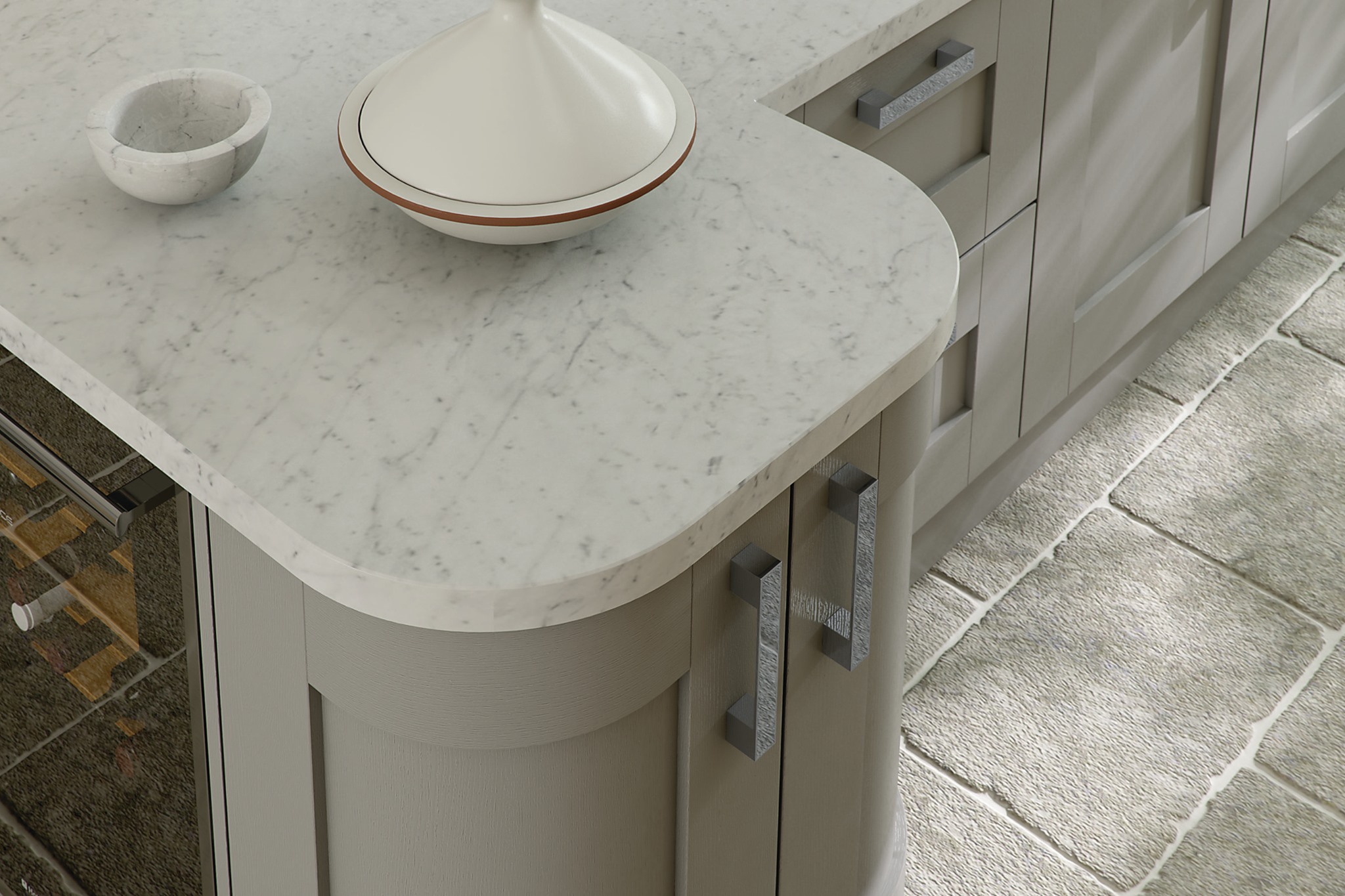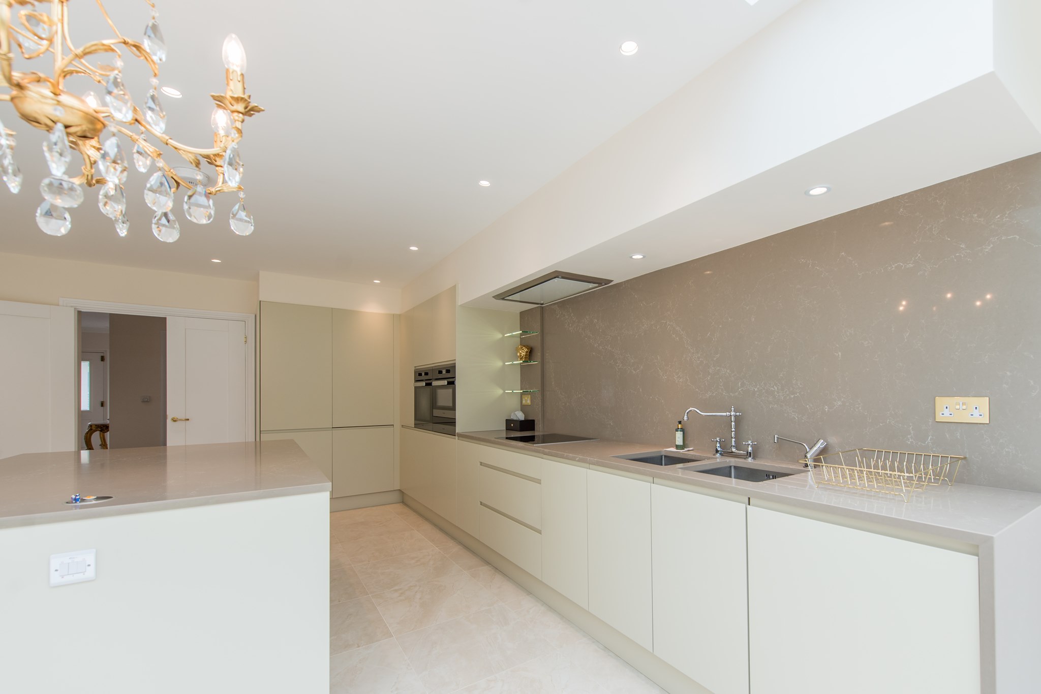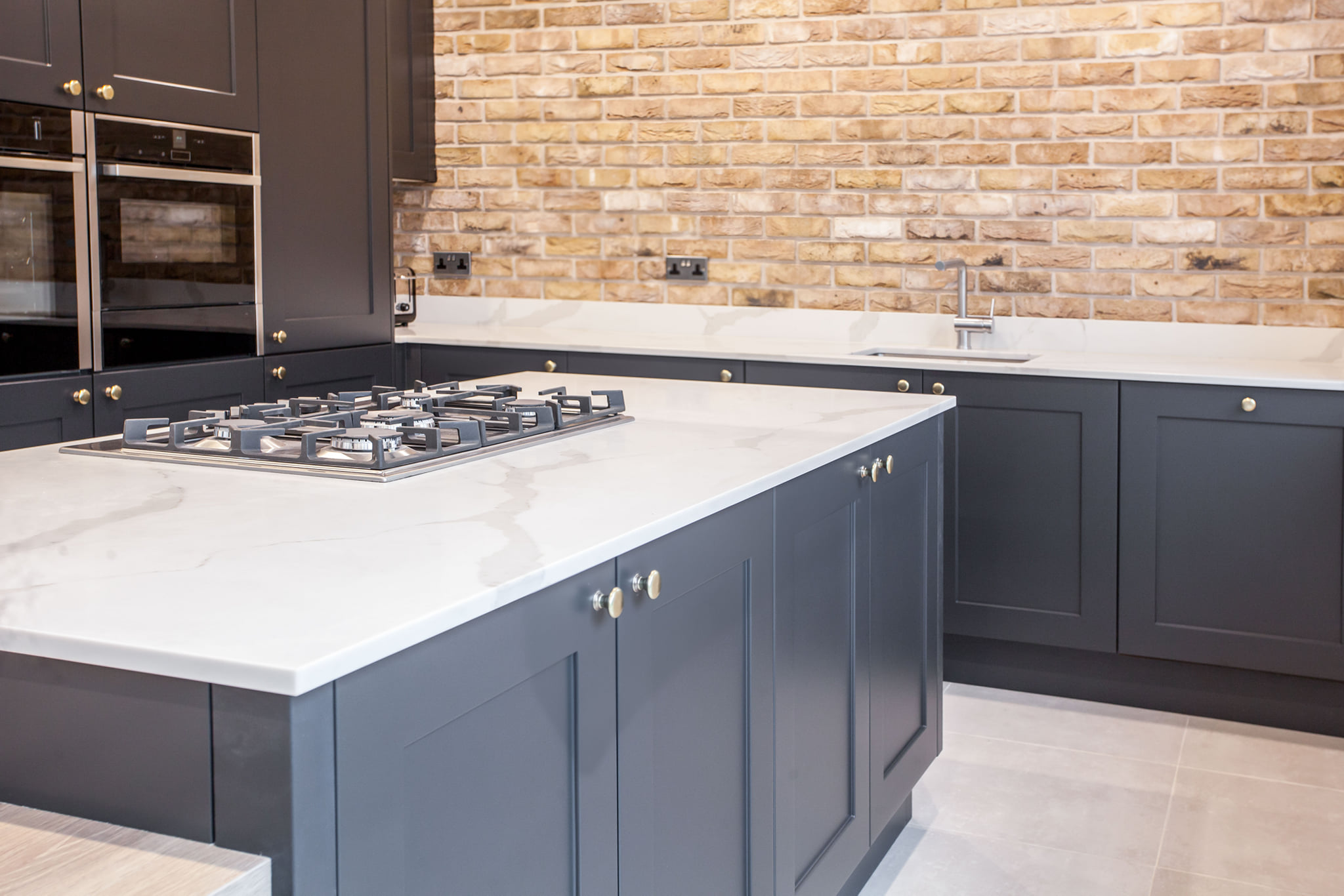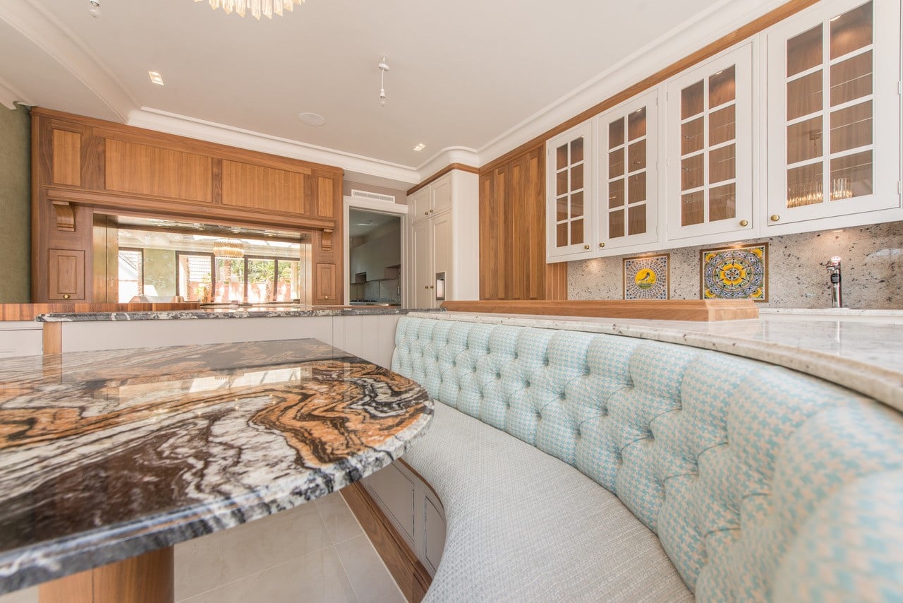 Our latest kitchen marble work features a stunning white Carrara marble worktop with grey veining that complements the modern aesthetic of the kitchen. The bespoke design maximizes functionality while adding a touch of luxury to the space. The result is a beautiful and practical kitchen that exceeds expectations.