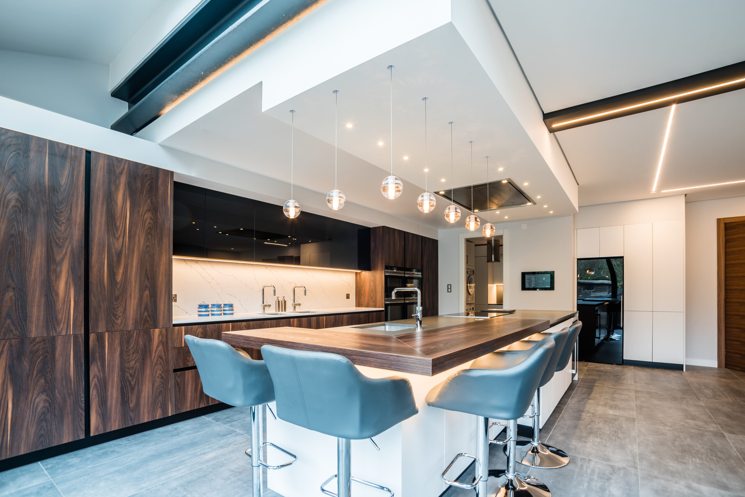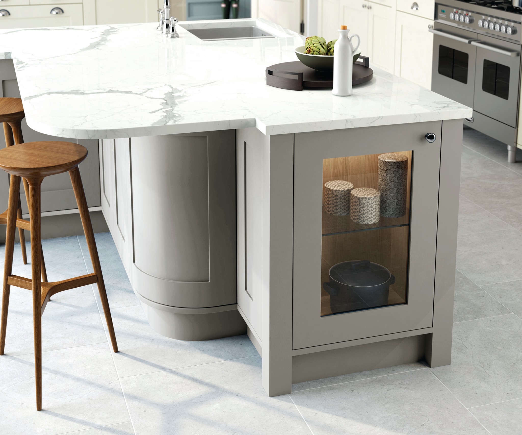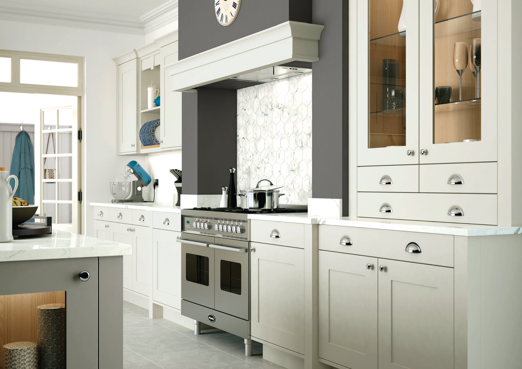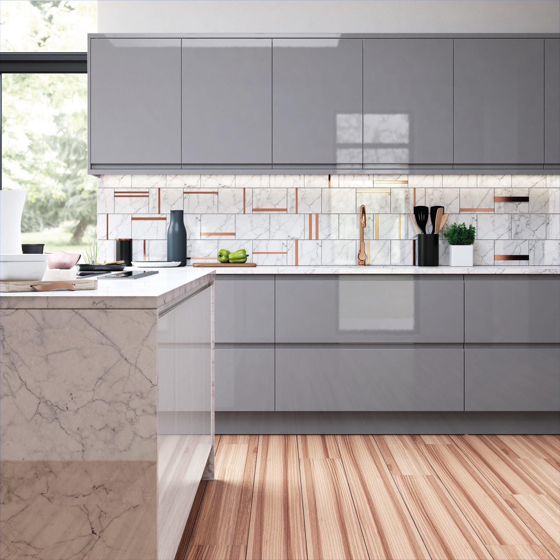 Our latest kitchen marble work features a stunning white Carrara marble worktop with grey veining that complements the modern aesthetic of the kitchen. The bespoke design maximizes functionality while adding a touch of luxury to the space. The result is a beautiful and practical kitchen that exceeds expectations.